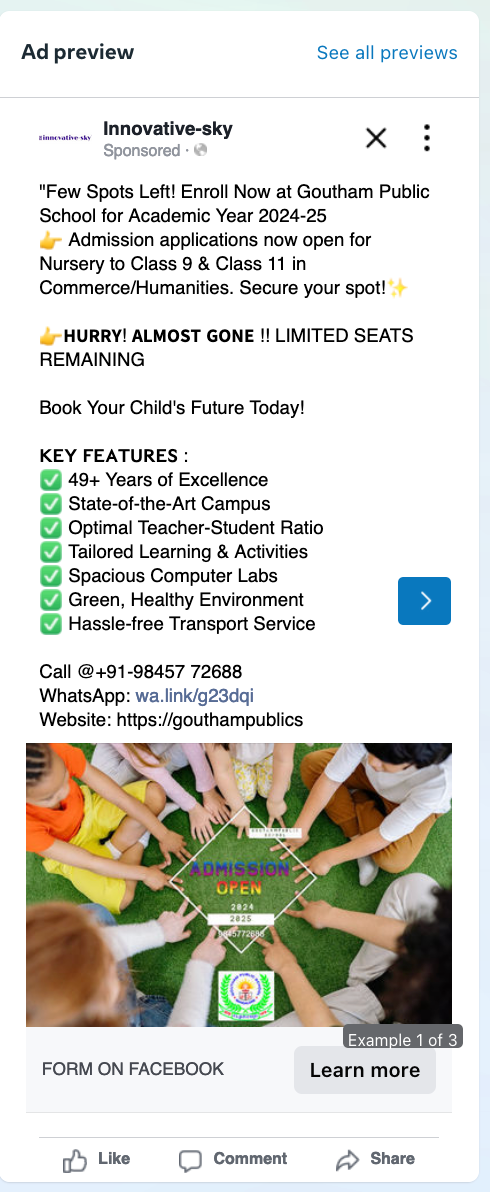 Additionally, total users shot up more than 400 percent from the previous year to a current year. Social media advertising contributed to an additional 300% users for Goutham Public School